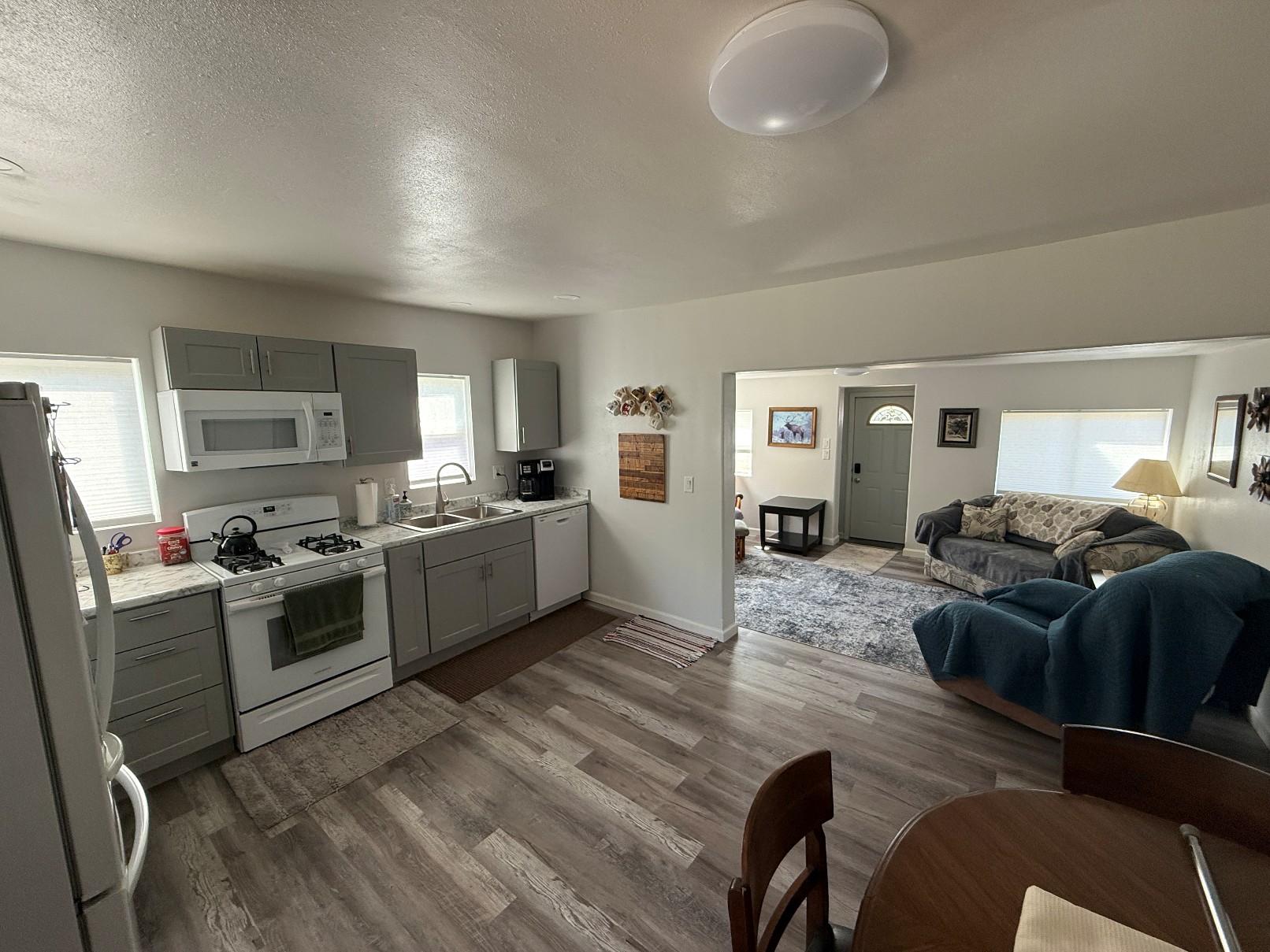 Charming 2 bedroom, 1 bathroom home situated on a 60 x 140 lot, fully remodeled in 2024. This inviting property offers convenient main floor living, a covered back deck perfect for relaxing or entertaining, along with a handy storage shed. There is plenty of room to build a garage or shop in the back yard especially with the alley access. The unfinished basement provides additional storage, making this home both comfortable and versatile.