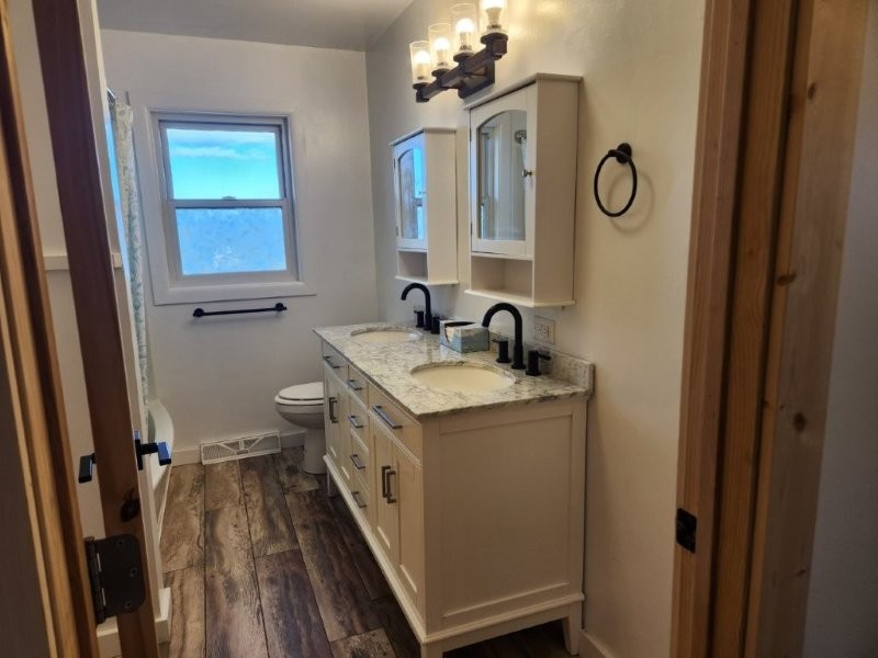 include a new kitchen, bathroom, master bedroom and family room. The bathroom downstairs