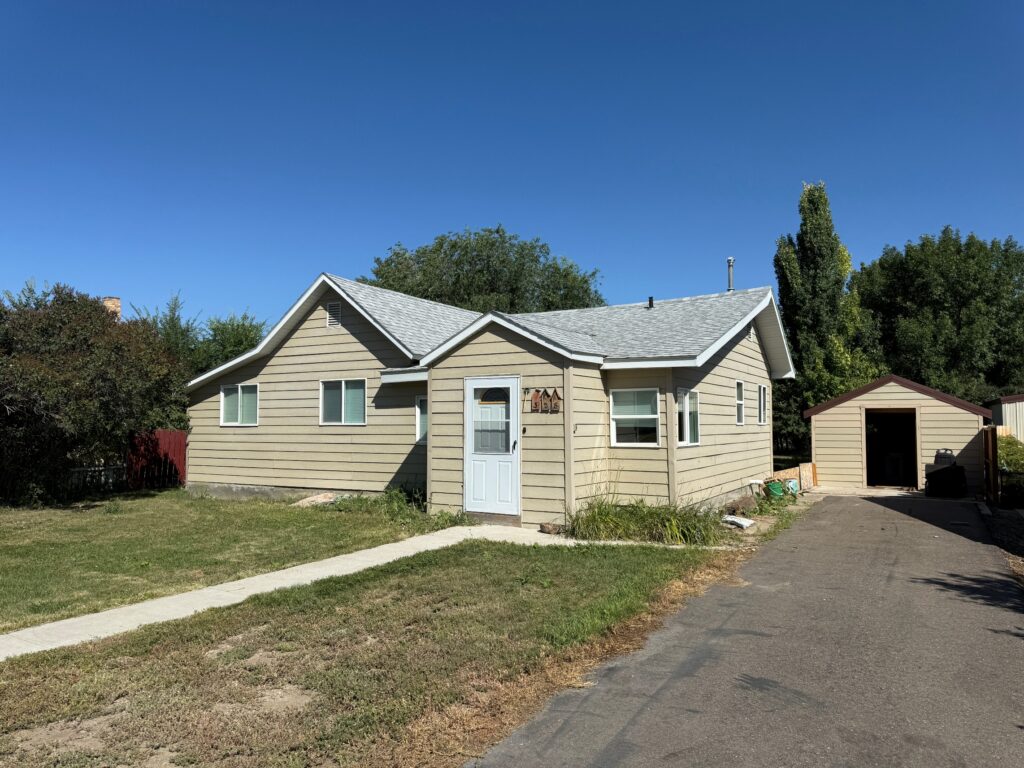 This charming 1,268± sq ft, single-level home features 3 bedrooms and 1 bathroom, offering comfortable living with the convenience of newer windows, maintenance-free siding, and a durable metal roof. The outdoor space is perfect for entertaining, complete with a cozy gazebo. A heated detached 24′ x 43′ garage includes an additional storage room, complemented by an extra storage shed. Situated on a spacious 90′ x 140′ lot with street and alley access, the property also boasts an attached carport and an asphalt driveway for added convenience.